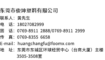 東莞市俊坤塑料有限公司,我們是一家集生產(chǎn)、研發(fā)、銷售為一體的實(shí)體企業(yè),并在東莞大京九塑膠城、樟木頭塑膠原料市場分設(shè)有分公司。本公司經(jīng)營萬美TPU系列、SABIC系列、DUPONT系列、TORAY系列、出光系列等綠色新原料。自主生產(chǎn)產(chǎn)品類型:PC原料,PC+ABS,透明PC,光擴(kuò)散PC,無鹵阻燃PC。